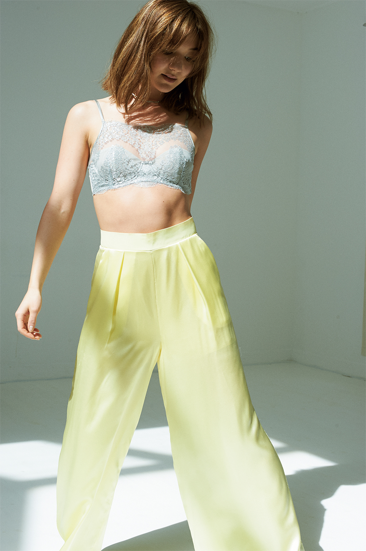 英国のロイヤルバレエ・スクールで身体表現を学び、現在は纏う人のライフスタイルに焦点を当てた下着を製作。そんな彼女は体を自己実現ツールと認識する。「馬に乗るなら太ももに筋肉が必要であるように、やりたいことを成し遂げるためにベストな体形を追求すべき。私の場合、日々ミシンに向かっているので肩周りのリフレッシュメントが優先。ダンス、ピラティス、キックボクシングといろいろなメソッドを取り入れることでバランスをとります」