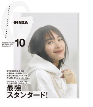 今回は創刊25周年記念号。新垣結衣さんが登場、白地と黒地の2バージョンの表紙でお届けします。また、新垣結衣さんとGINZAとのコラボレーション、究極のスタンダードアイテム〈huhu フーディ〉を作りました。糸からこだわった素材をはじめ、シルエット、リブ、首回りの立ち具合……理想のアイテムができあがりました!昨年秋から新垣結衣さんとの打ち合わせを重ねてようやく完成、バリエーションは「WHITE」「BLACK」「PHOTO PRINT」の3型。9月16日(金)18時から10月6日(木)23時59分までの期間限定で、ECにて販売をします。代官山蔦屋書店ではサンプルを展示。9月16日(金)18時から枚数限定となりますが、「PHOTO PRINT」を店頭にて販売します。一生モノの大人のフーディ、ぜひご注目ください。