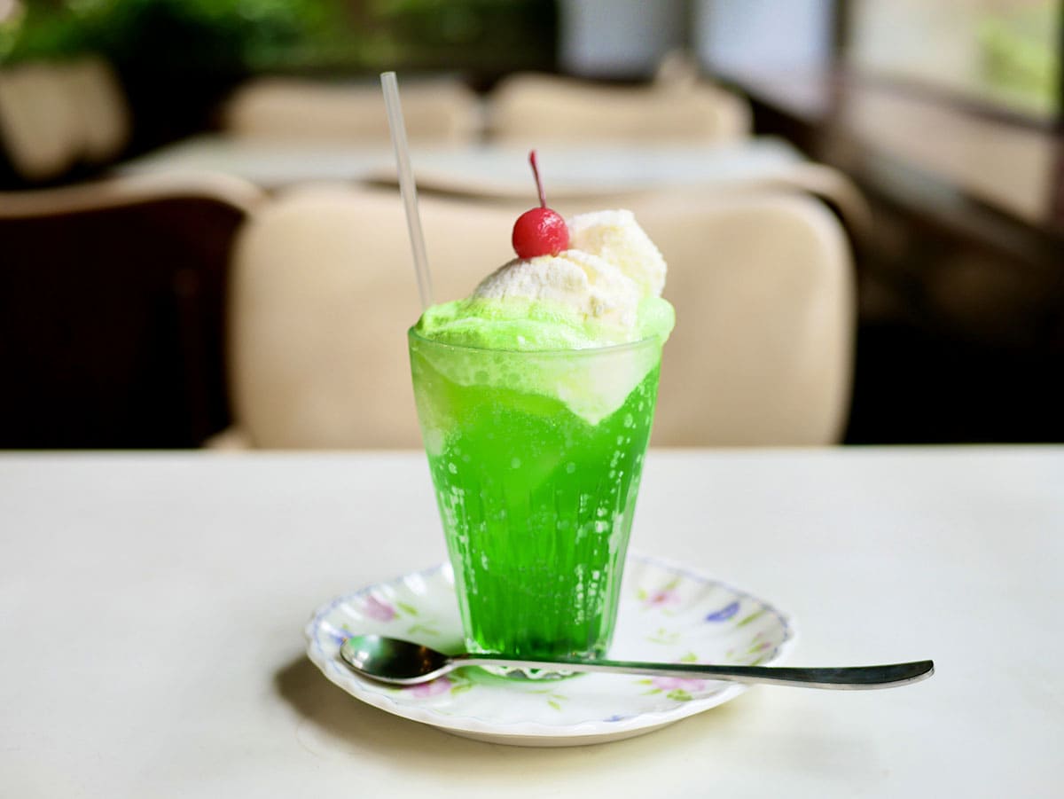 定番のサクランボがちょこんと上に乗ったクリームソーダは、昭和の景色がそのままで、いつも平和な気分にさせてくれる。