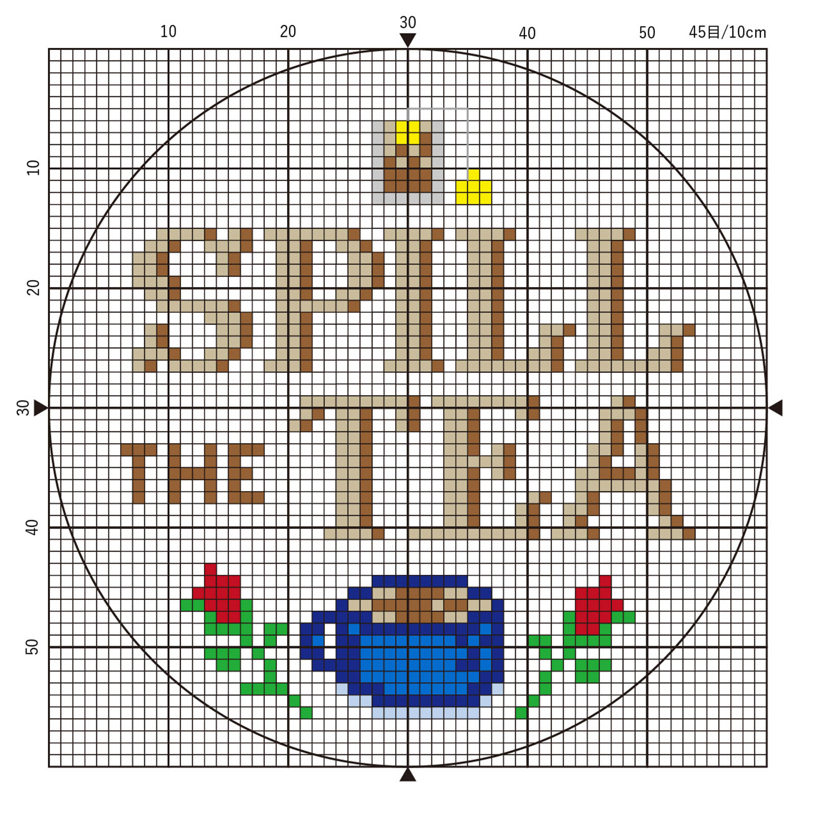 さて、クロスステッチのお時間です!以下の図案を使用して、ぜひ作ってみてくださいね。冬の休暇は友人とお茶会を開いて、ステッチしながら会話に花を咲かせるのもいいのでは。