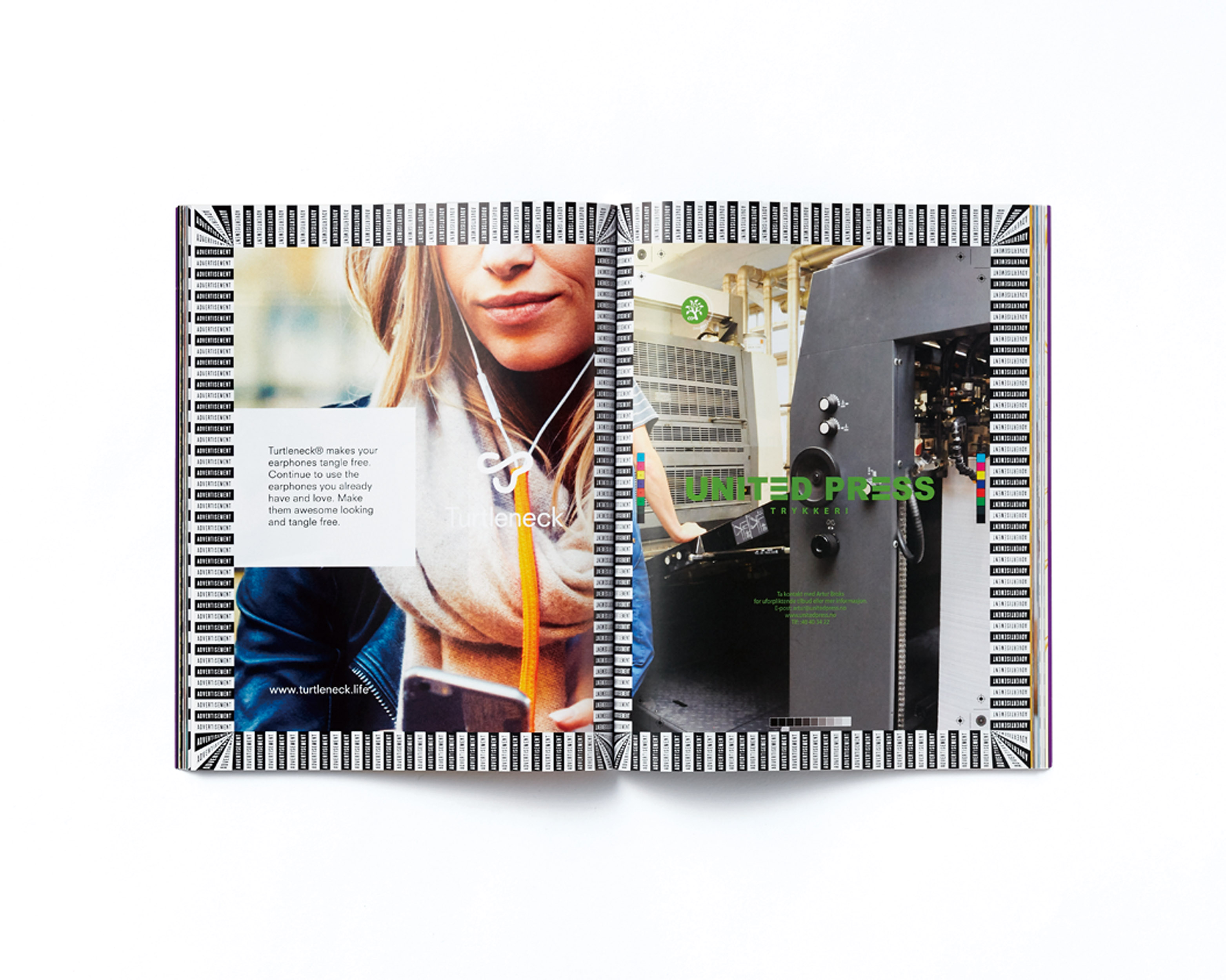 2cm幅の“広告警報”でわざと広告を強調。「若い人たちは広告の操作性とかにうんざりしてると思うから」とエリス。