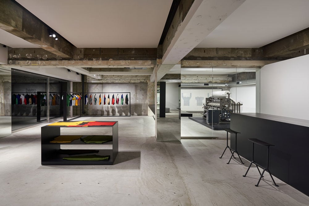 さらに店内奥にはマシン同様、実際の製造に用いるプレス機やミシンなど一通りの環境が備わっており、ブランドを象徴する折りひだの加工がガラスを隔てた目の前で行われるという。吉岡氏は不要な足し算をせず、複数のレイヤーとなったありのままのプロセスを示しているに過ぎない。消費者から遠いはずの製造現場を最も近い売り場で公開するという試みを含め、時代と共に人々と向き合い続けてきたメゾンのものづくりを率直に映し出している。