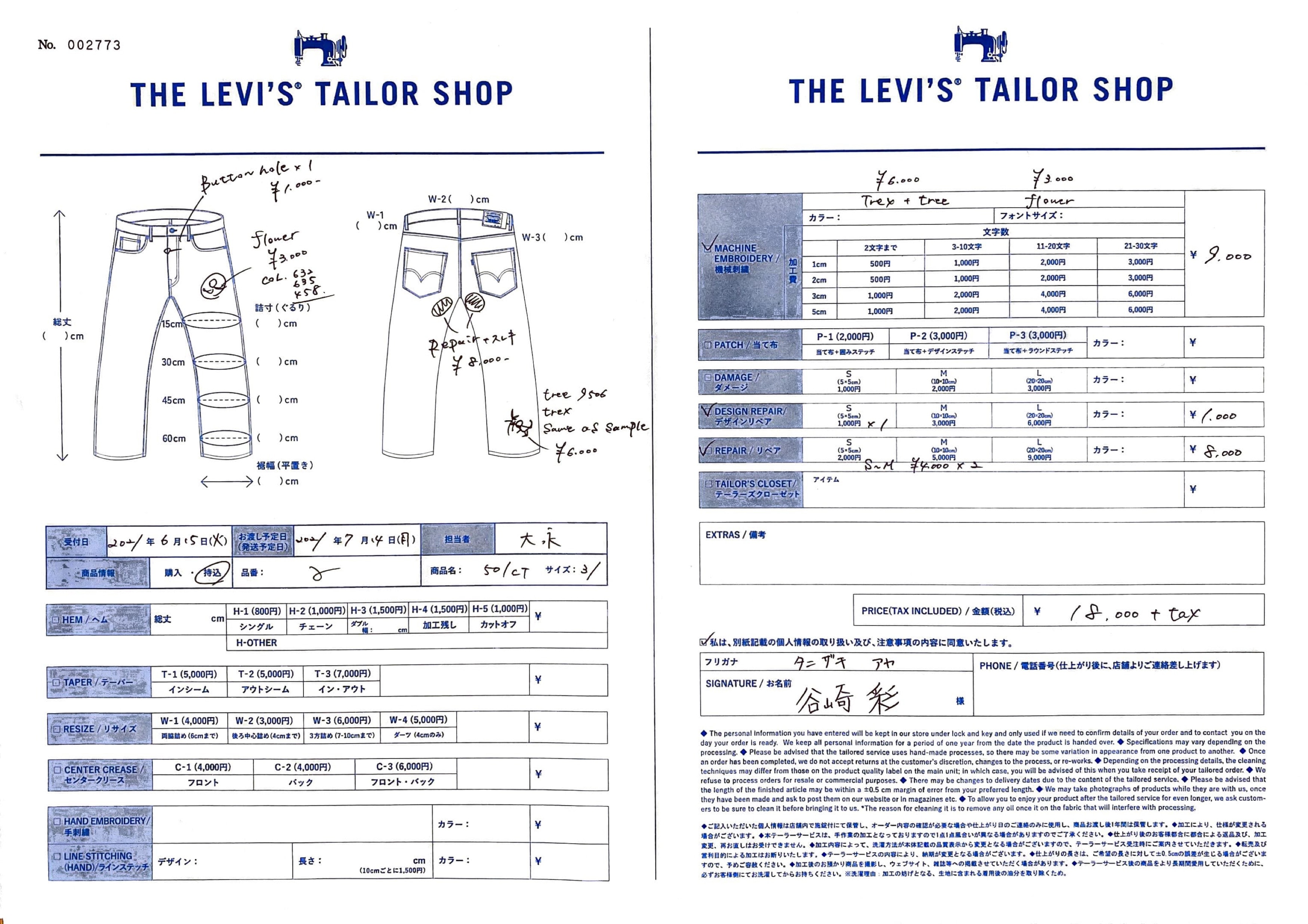 確か、リーバイス®ストアは『一年以内に店舗でお買い上げ頂いた方がレシート持参でいらした場合のみ、リペアサービスを行います』だったはず。ですが、他に良い方法も思いつかず、ダメもとでリーバイス®ストアに問い合わせてみました。すると「今年の5月20日(ジーンズの誕生日)からリーバイス®製品であれば、以前に購入したものでも、古着でも、デニムアイテムに限り有料でリペアサービスを受けられるようになったんですよ」とのこと。ナイスタイミング!