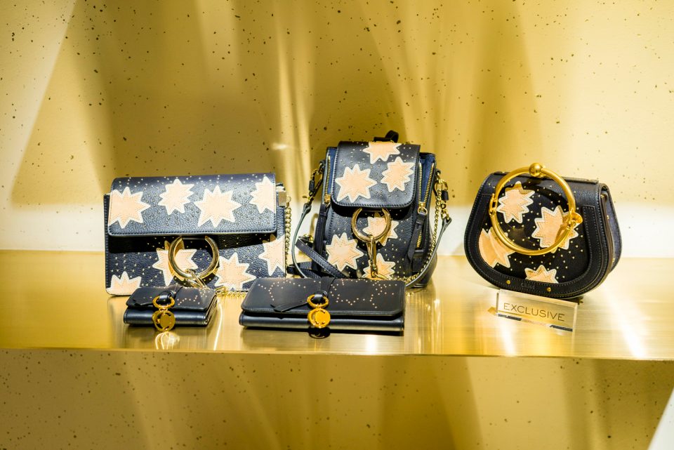 1.オープンを記念して、〈クロエ〉のシグネチャーであるブレスレットバッグ「NILE」(上段右) と代表的なアイコニックバッグ「FAYE」(上段中・左)から、スターモチーフのパッチワークとマイクロスタッズ があしらわれた銀座限定商品が登場。 この冬のウィッシュリストに加えたい!