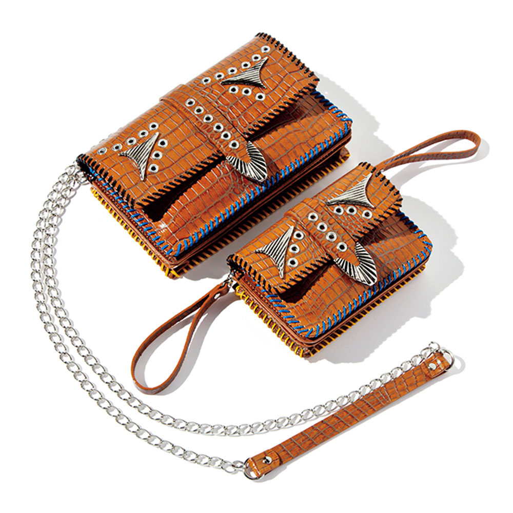 噂通り〈トーガ プルラ〉のバッグが使える。ベルトに通すフープと肩にかけるチェーンが付け替え自由で、クラッチとして持ってもOK。ウェスタンなルックスも強めで◎そもそも荷物が少なく、身軽な人って洒落てる。