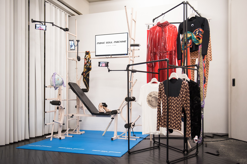 今回開催されるポップアップショップは”Manic Soul Machine”というテーマをもとに、近未来のジム/フィットネス愛好者を招くような世界観を表現している。インスタレーション空間は2049年のトレーニングルームをイメージし、インストラクション用スクリーン、ラージサイズのジムボールやiPad等が設置される。今シーズンのウェアから、バッグ、アクセサリーに至るまで、〈マリーン セル〉の豊富なコレクションが並ぶ空間はコンセプトを最大限に体感できそう!
