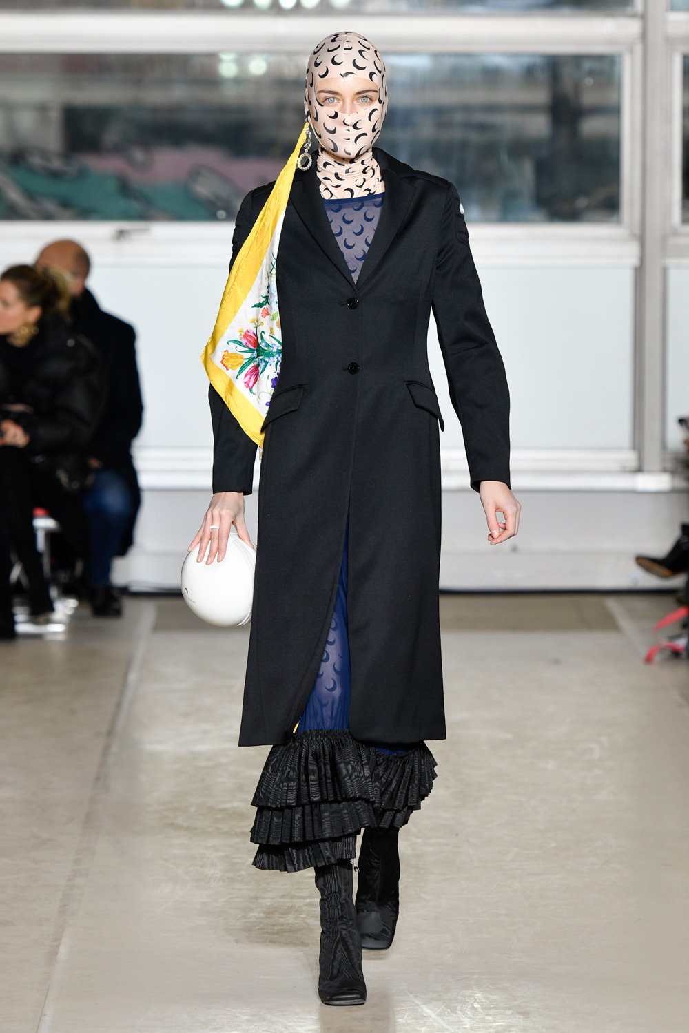 2017年に”LVMHプライズ”でグランプリを受賞し世界から注目を集めているブランド〈マリーン セル〉。2018年秋冬コレクションでは、スポーツやストリート、クチュールなど、既存のカテゴリーに当てはまらず、またリサイクル素材を使用するなど、大量消費の時代を経た未来のファッションへのアンチテーゼとしての「フューチャーウェア」を展開している。GINZAでもお馴染みプロフェッサー栗山が以前デザイナーにインタビューした際には、女性らしさを保ちつつ、心地よさや防護性、機能性を重視していると答えていたのが印象的だった。