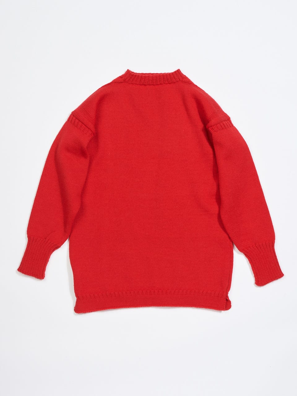 伸縮性、耐久性、防湿性に優れた英国ブランドのガンジーセーター。何年着ても型崩れしない! 流行を追わない!真面目なセーターなんです。色は艶やかな赤をチョイス。