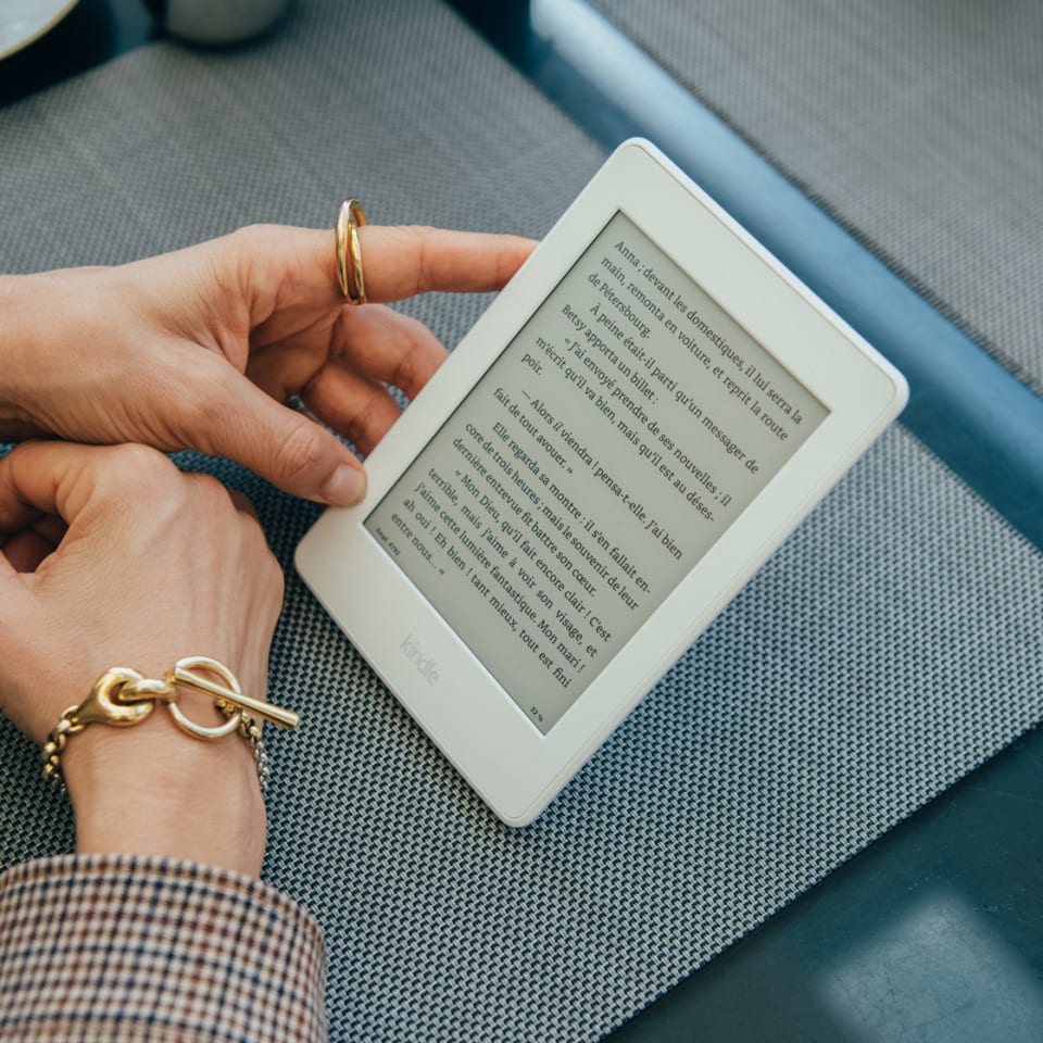 「職業柄、海外への移動が多く、待ち時間やジェットラグはつきものなんです。ミーティングの間ちょっとした時間も無駄にしたくない(笑)。そんな時は、大好きな読書タイム。〈kindle(キンドル)〉は、こんなにコンパクトなのに何冊かの本を持ち歩くことができるので、気に入っています。今読んでいるのは、ロシアの作家レフ・トルストイの『アンナ・カレーニナ』。古典的な作品が好みでよく読んでいます」