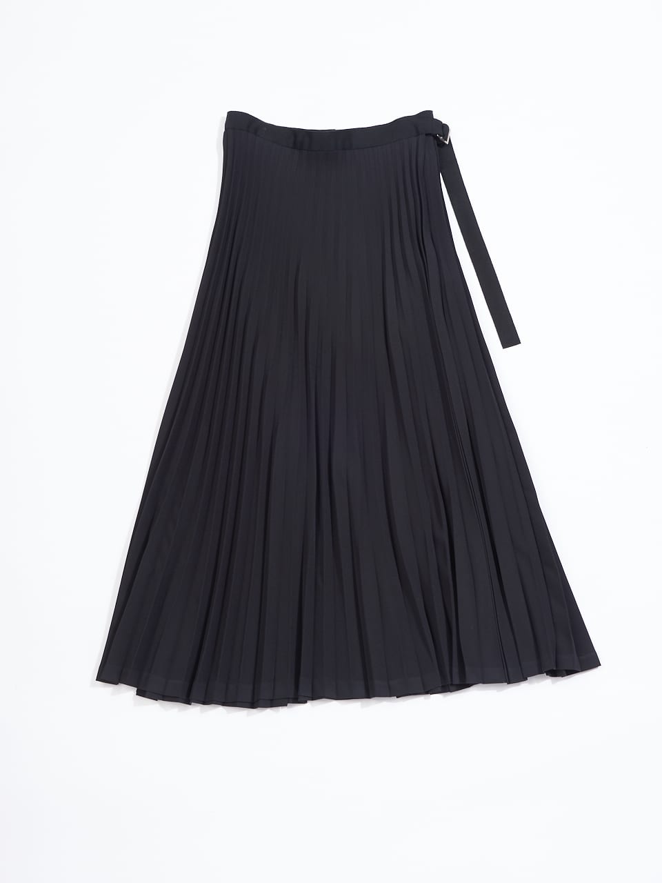 レディな気分の時はこのスカートが大活躍します。生地をたっぷり使用した、ラップタイプのボリューミーなプリーツスカート。