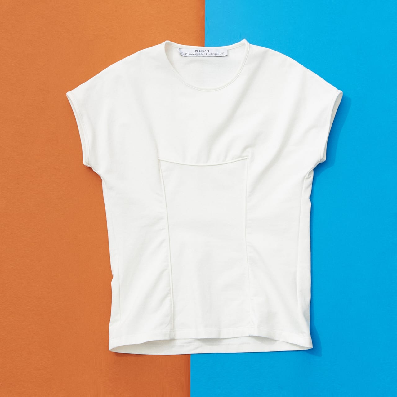 〈Vejas〉のデザイナーが立ち上げたプロジェクトブランドからは着るだけでモードに決まる変形Tシャツがラインナップ。 ¥23,000(ピハカピ|ディプトリクス ☎︎03-5464-8736)
