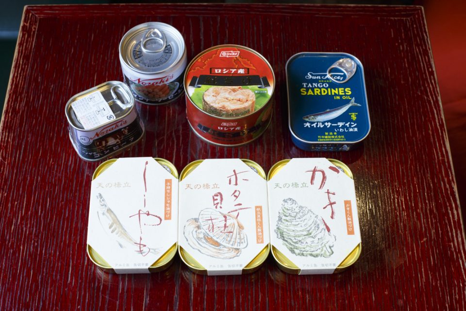 間口さんがアレンジメニューに使う缶詰たち。コンビーフやソーセージ、オイルサーディンなど、昔から愛されている王道缶詰が多い