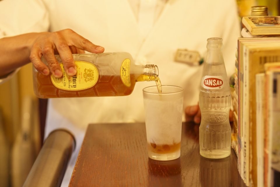 宇宙一の呼び声が高いハイボール。冷凍庫でキンキンに冷やしたアルコール度数43度の希少な復刻版角瓶を使用。ウイスキー60mlに、ウィルキンソン1本(190ml)を入れて、仕上げにレモンピールで香り付け。氷を使わないのが間口流。たったこれだけなのに、ウイスキーと炭酸の一体感が半端なく、レモンの爽やかな香りが鼻を抜け、なんともクリアで、スッキリとした後味。誰も真似できない、今まで40万杯以上作ってきた経験が生きていると間口さん。もし自宅で作るなら、ピールではなく、レモンスライスを浮かべてもOK。香りの持ちが良くなるとか