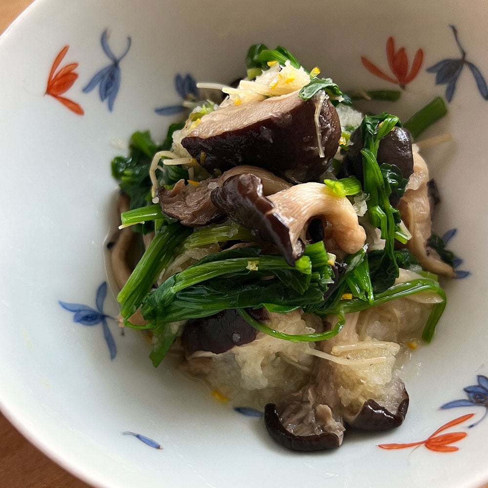 「セリは根っこまで美味しいので、捨ててしまわず、端まで綺麗に洗って調理してください。きのこはちょっと多めに出汁で煮浸しにしておけば、とても便利な常備菜に。うどんやお味噌汁の具材にもなるほか、トマトと一緒にオリーブオイルで和えるとイタリアンにもなりますよ!」