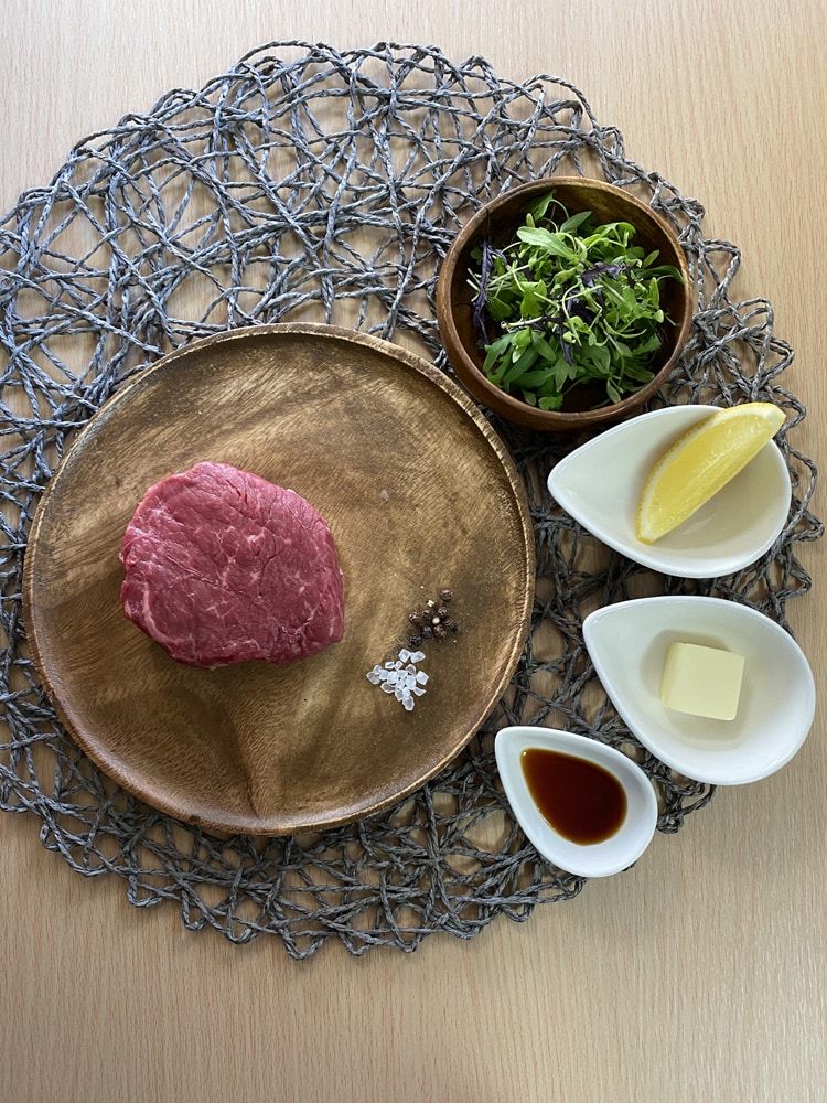 『ロゼ色ステーキのバター醤油添え』