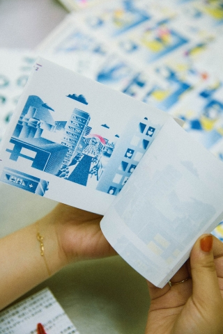 印刷する紙の種類でも大きく雰囲気が変わるそう。実際にリソアニメのコマが印刷されている現場を見学させてもらうと、1コマあたりの大きさは名刺程度でとても小さいことに気がつく。「グラフィックをどれくらいの大きさで印刷するかで、紙の繊維が映り込んだり、シルエットが変わったりと味わいが異なってくるんです」