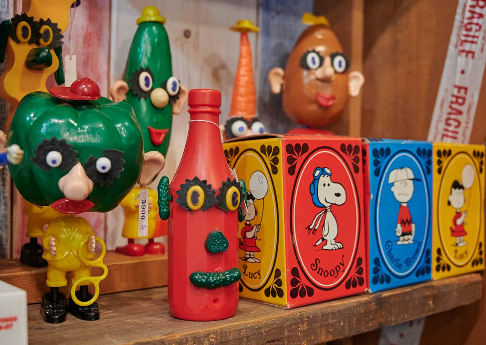 1999年から下北沢で営まれているアンティークトイショップは、トタンが何重にも貼られた秘密基地のような外観。扉を開けると、棚中に並んだ 「ビッグボーイ」や「エッソ」など、企業広告のキャラクターたちが出迎えてくれる!1930年〜70年代を中心にした雑貨の中には、今では電子化してしまったスーパーの会員フダも。オーナーの内野慶一郎さんの目のつけどころがディープ。