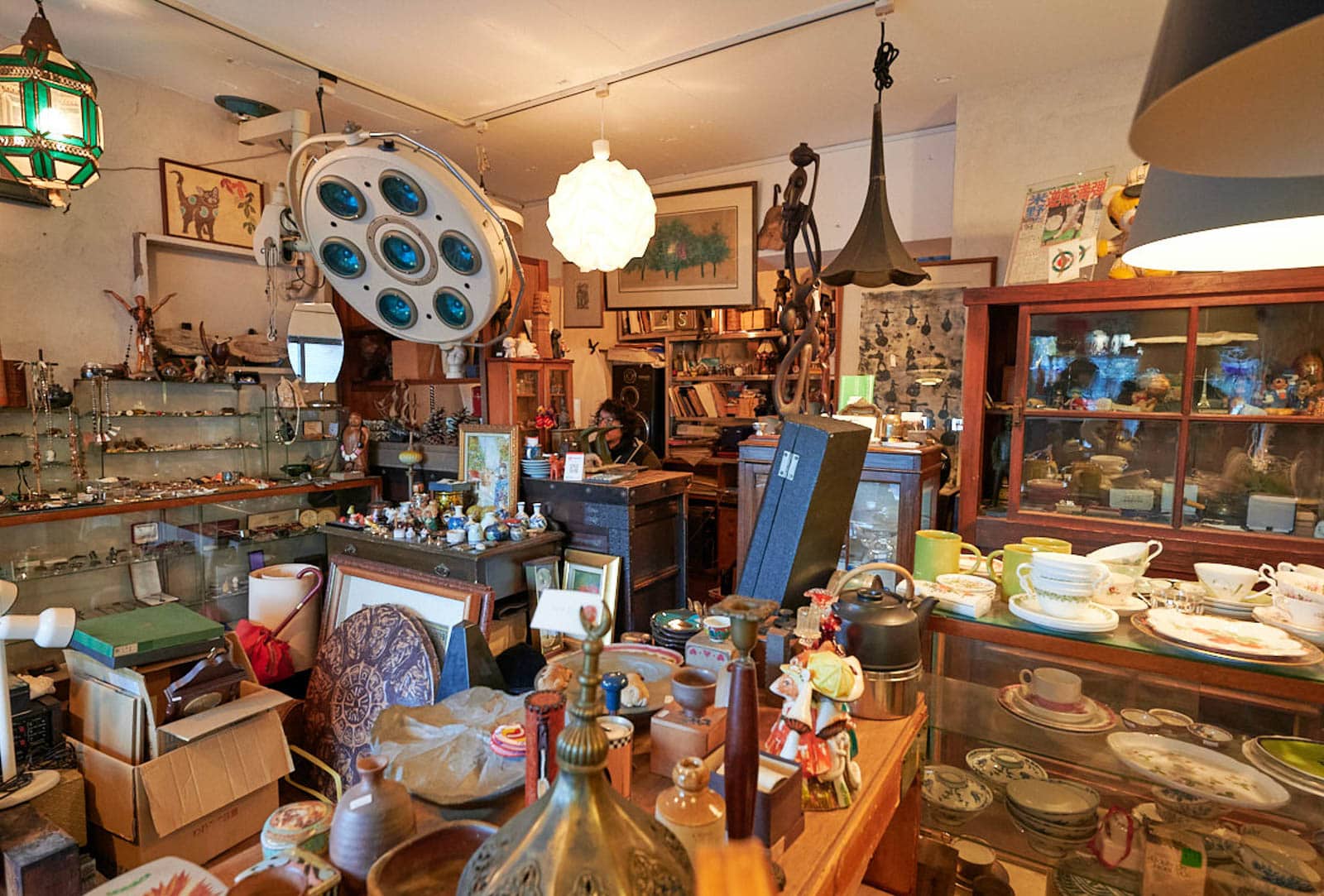 井の頭通り沿いでひと際目立つ大きな看板のユーズドショップは11年前にスタート。病院や民家など、さまざまな場所からやってきたものが寄せ集められ、混沌とした空気を放つ。昔から何かを拾って集めることが好きだったという店主の千葉昌平さんは、買い取るものも、市場価値を問わない。作家の失敗作や、趣味で作られたステンドグラスのランプだって、本当によいと思ったものならお店に並べている。