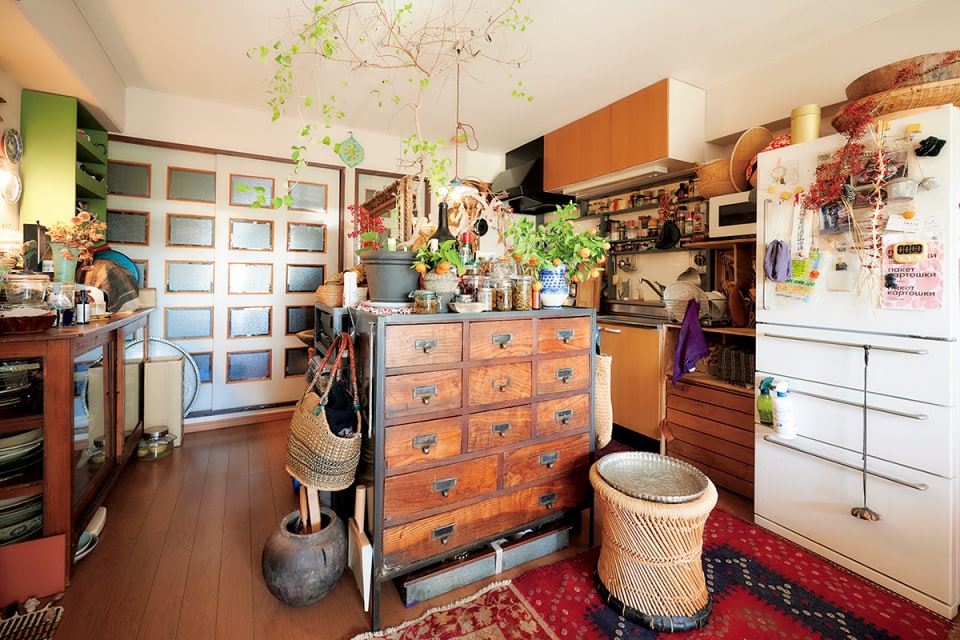 ジュエリー作家としての活動のほか空間プロデュースも手がける。キッチンの棚もほぼ自作!