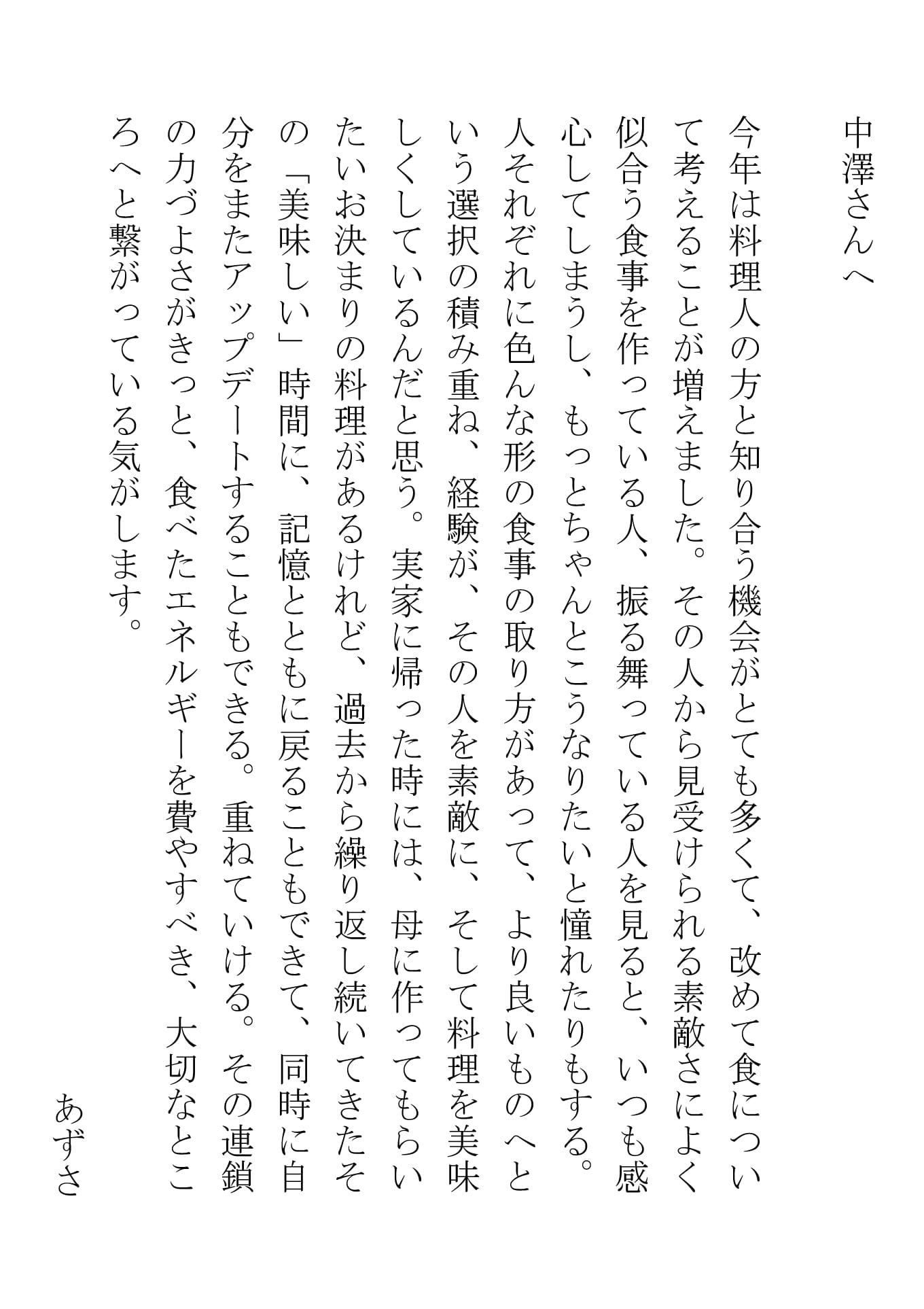 生活においてエネルギー源となる食。ふたりの“あずさ”の往復書簡
