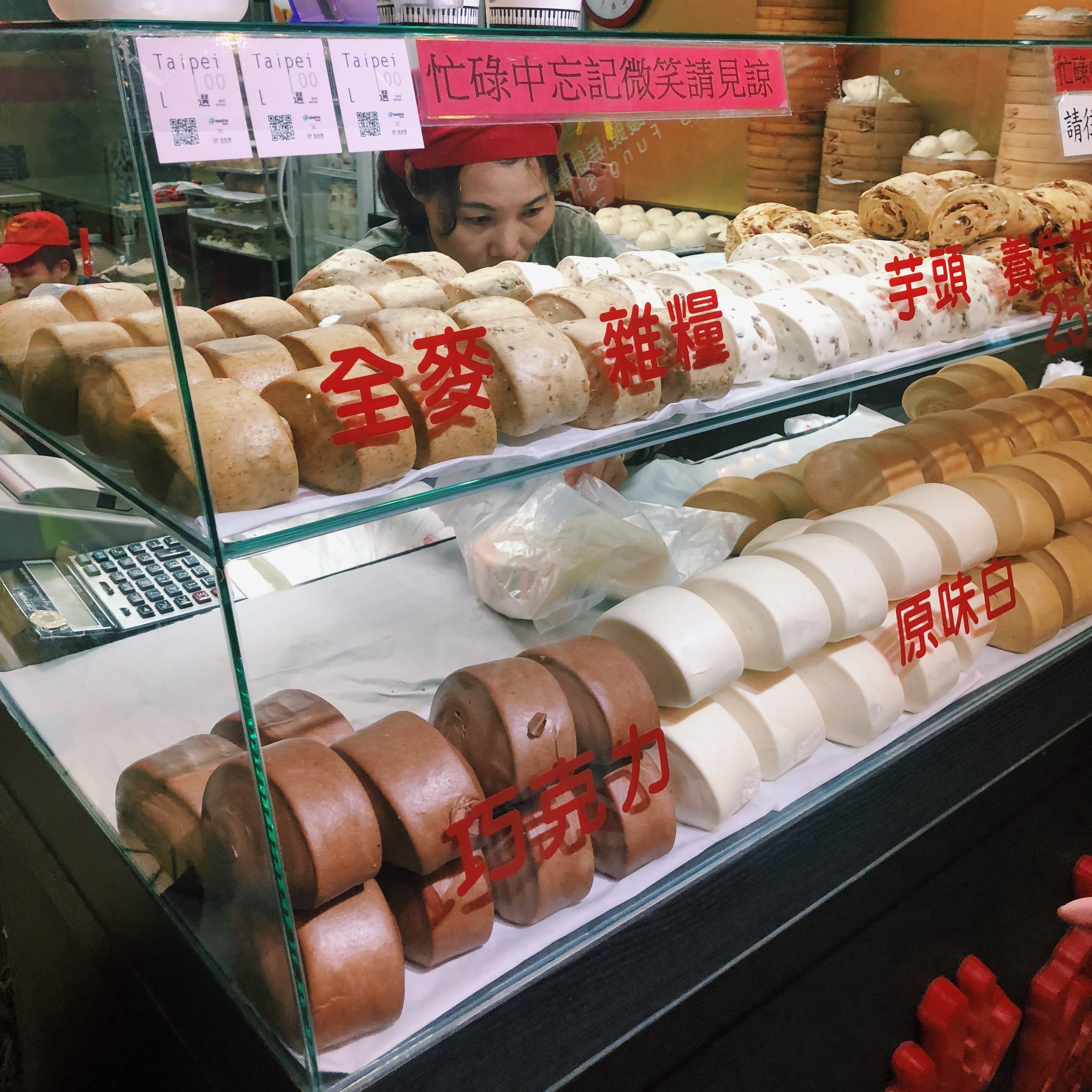 で、この最寄駅「台電大樓」駅で寄りたい店が「永豊盛」(台北市大安区師大路111號)。具なしまんじゅう「饅頭(マントウ)」が並びます。黒糖やタロ芋やチョコレート味など種類豊富。1個15元(約50円)。モチモチ、フワフワな食感がたまらない。