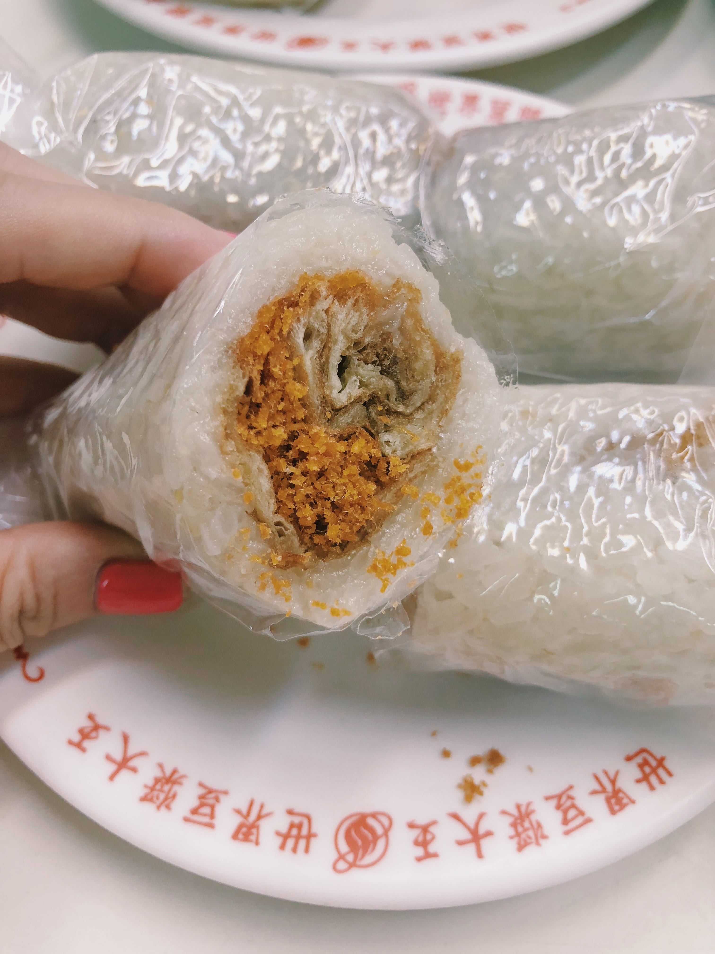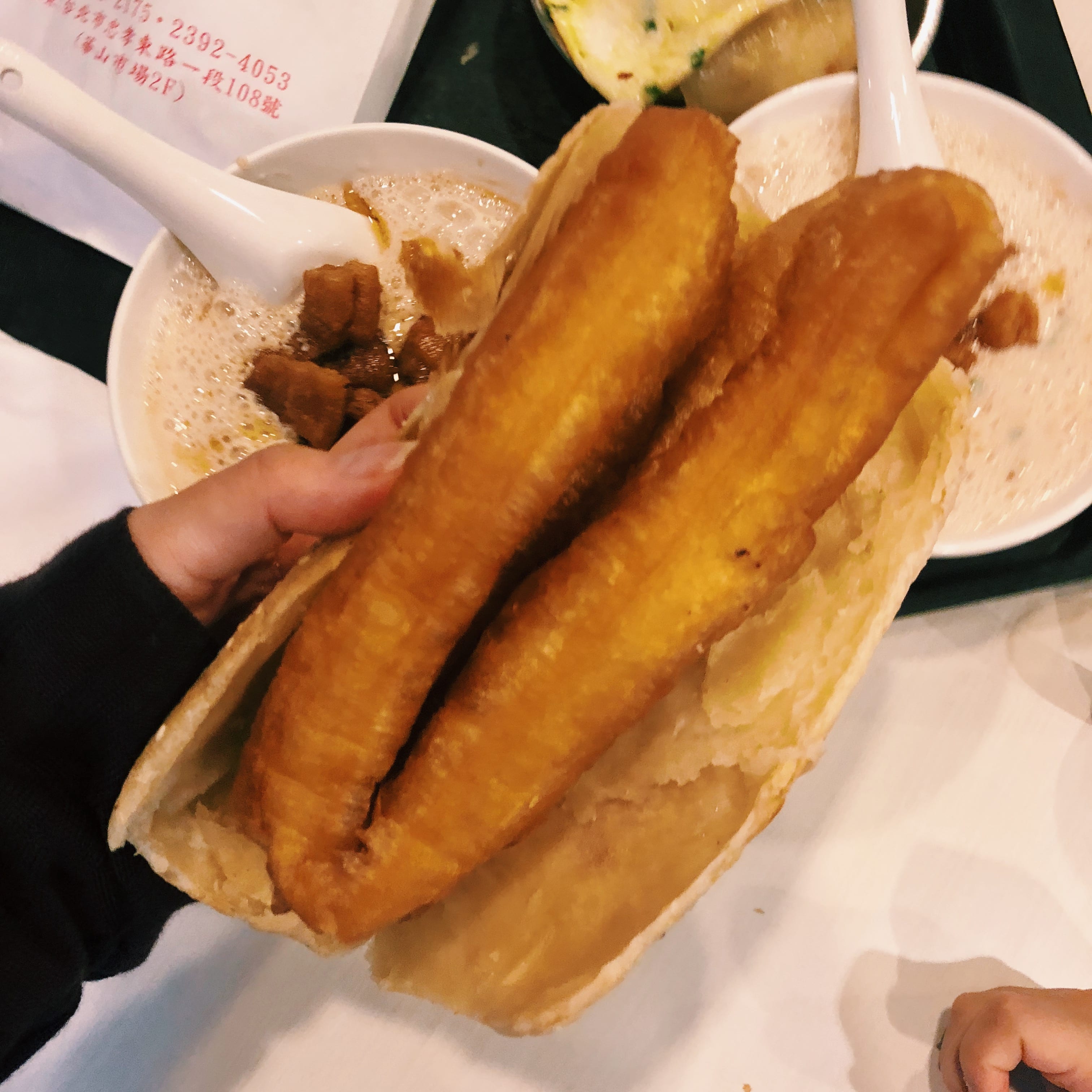もち米のなかに、漬物、肉鬆(豚肉でんぶ)、揚げパンが入っている「飯糰」。超美味しいんですが、ずっしりと重みもあり、正直1本は食べられないYO…。