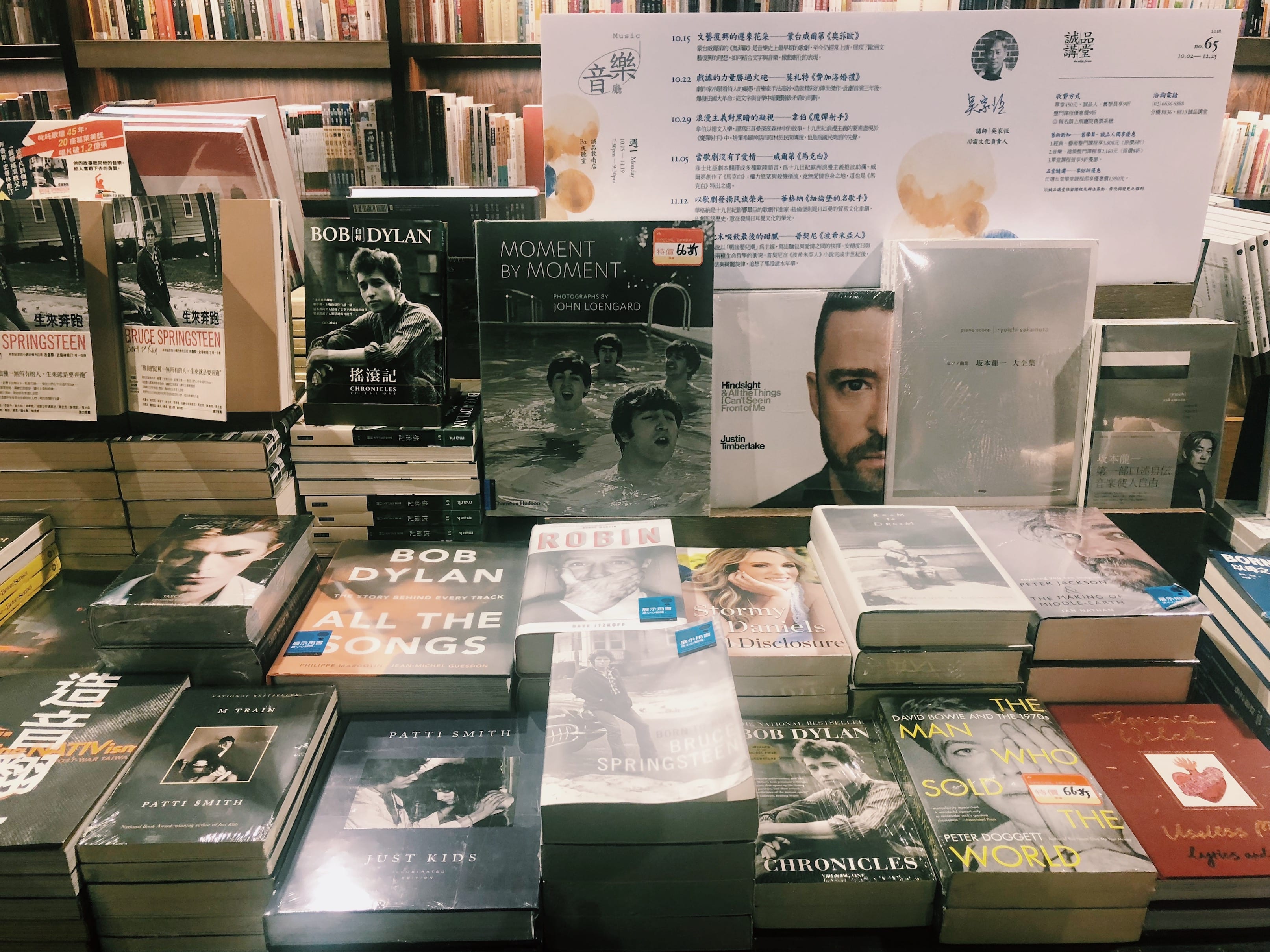 そのあと、お腹を空かすために街を散歩。台湾のカリスマ本屋「誠品書店」へ。音楽棚はこんな陳列でした。2019年秋に日本に初出店するって知っていました?楽しみだな♪