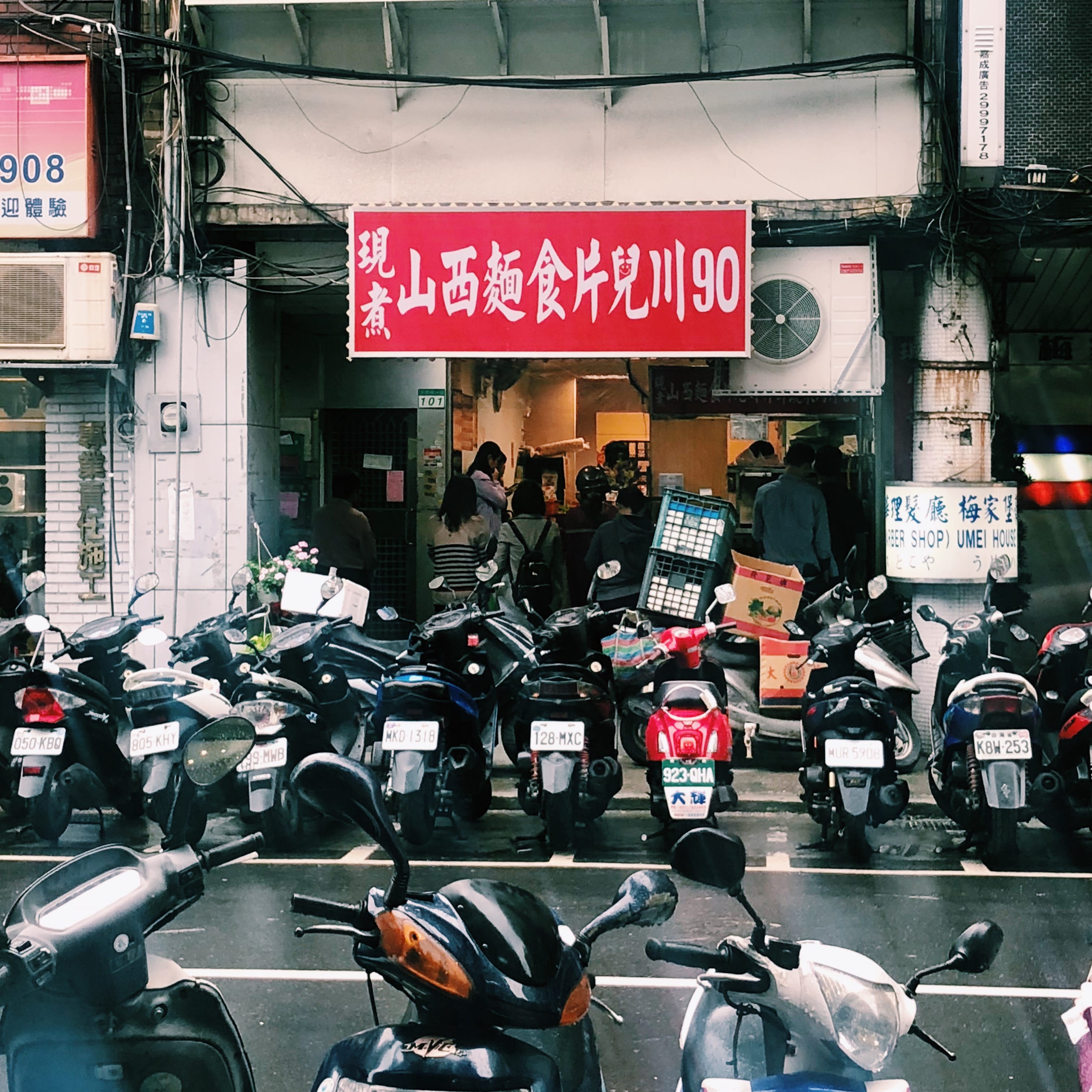 店を出て2〜3分歩くと、ご近所さんで賑わうお店を発見。「現煮山西麵食片兒」(台北市中正區漢口街一段110-1號)、ネットで調べると有名店みたい。行ってみましょう!