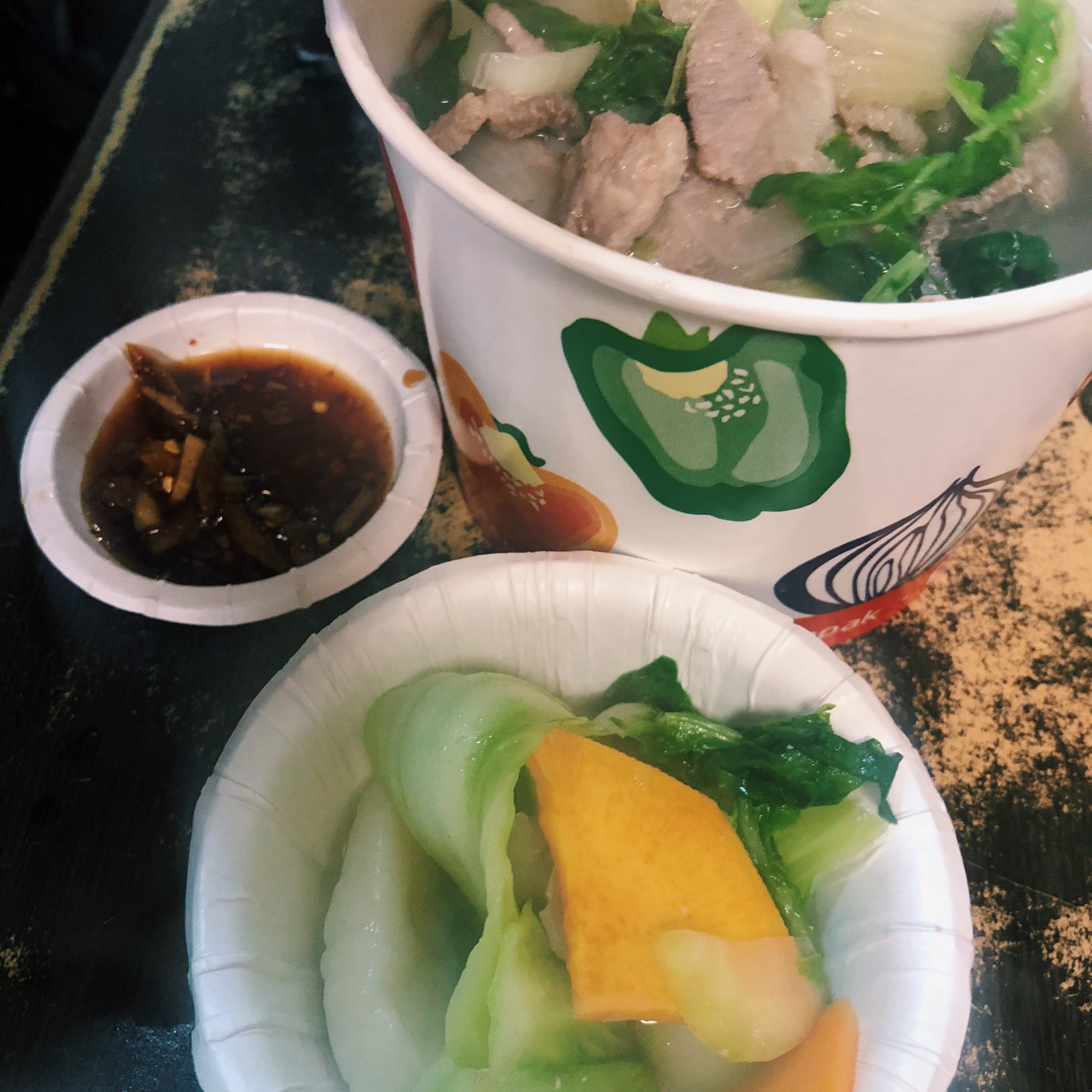 驚くのがボリューム。日本人的感覚だと3人前くらいありそう。これを1人で食べちゃう台湾女子はすごい。野菜ばかりなので、するっといけちゃうのかな。豚肉と野菜の甘さが優しい味。パンチが欲しいときは香味醤油を合わせても◎。