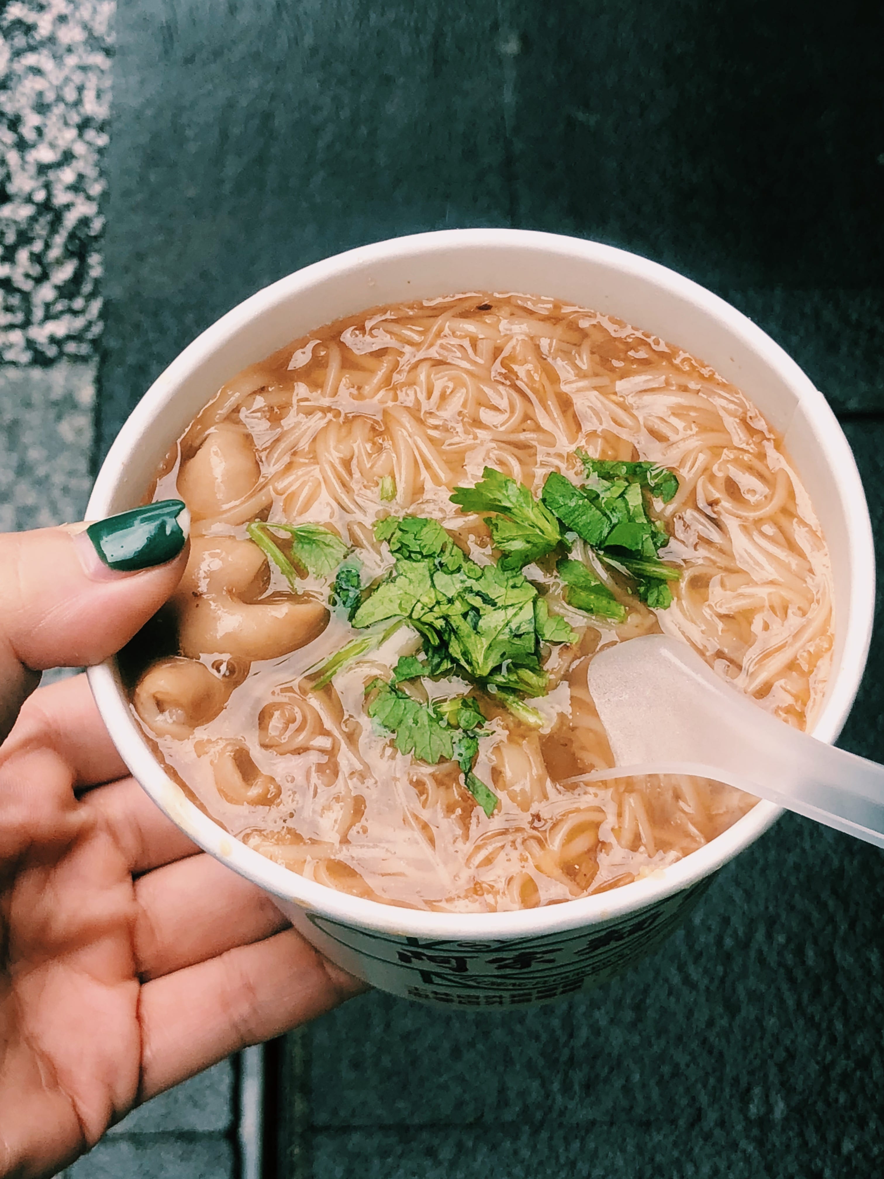 「麺線(ミェンシェン)」とは、日本のそうめんみたいな細い麺をとろみある鰹出汁で煮込んだもの。55元(約200円)の小さいサイズを注文して、立ち食い。喉越しが良くてするする食べられました。具材はホルモンや牡蠣。パクチーとピリ辛の辣椒が相性抜群。食べ終わると体がホッカホカ。