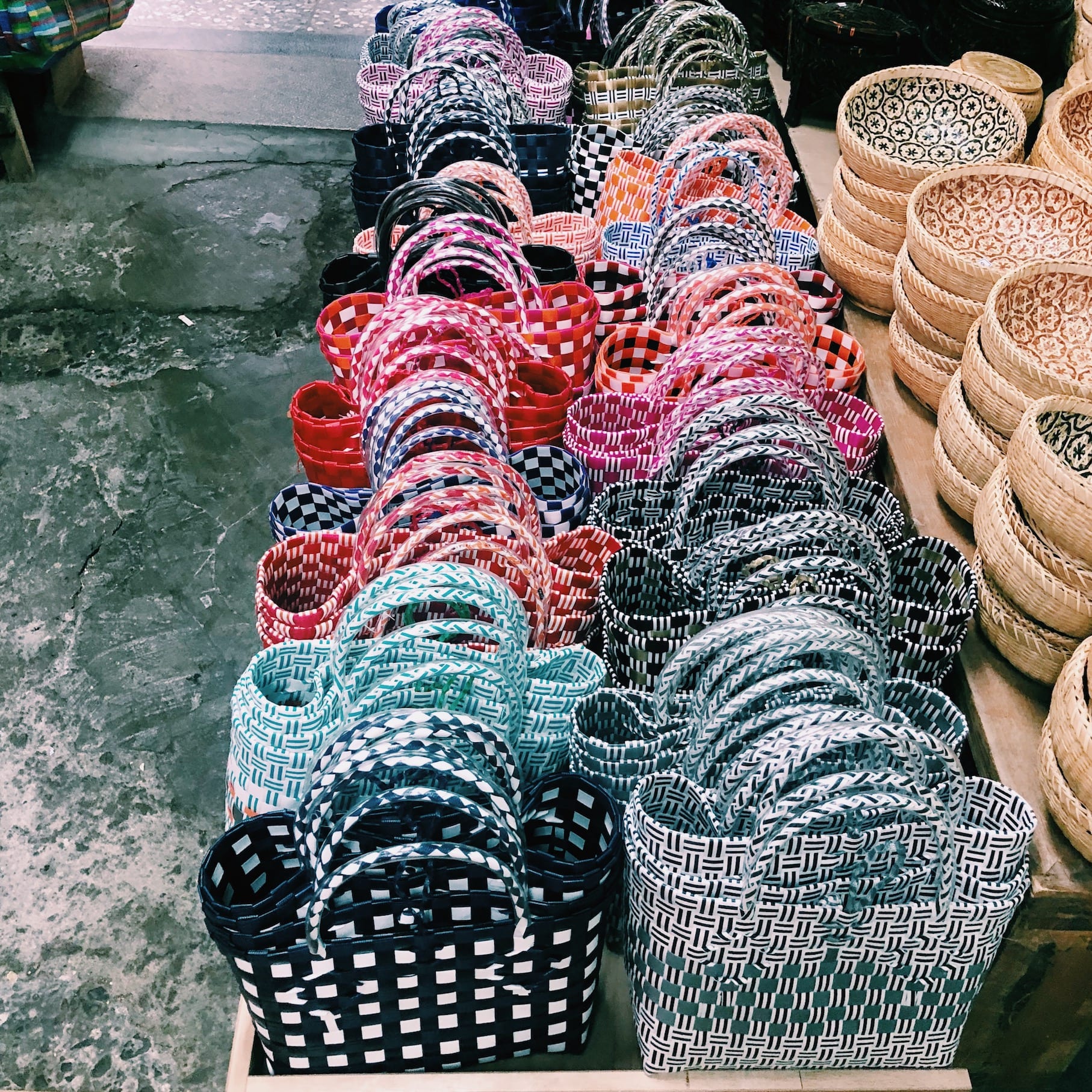 東京でも流行っているプラバッグを買いに来ました。色、大きさ、素材、編み方など幅広いラインナップが魅力。写真の小さいサイズは約500円。デザインの凝った大きめでしっかりした造りのプラバッグでも2,000円いかないくらい。夏に活躍しそう〜。かさばるので、スーツケースの半分は空けておきましょう。