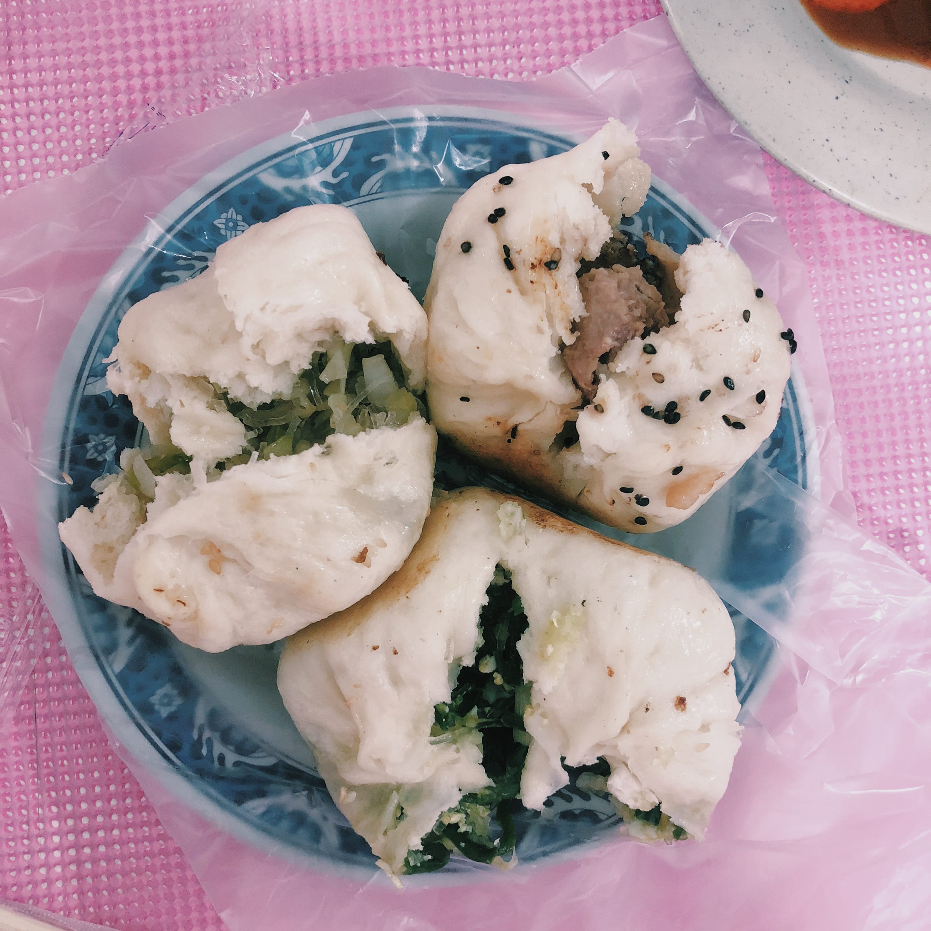 肉まんを焼いたようなもので、肉、キャベツ、二ラの3種類。15元(約50円)でおやつには丁度よいのです。空港で食べました。