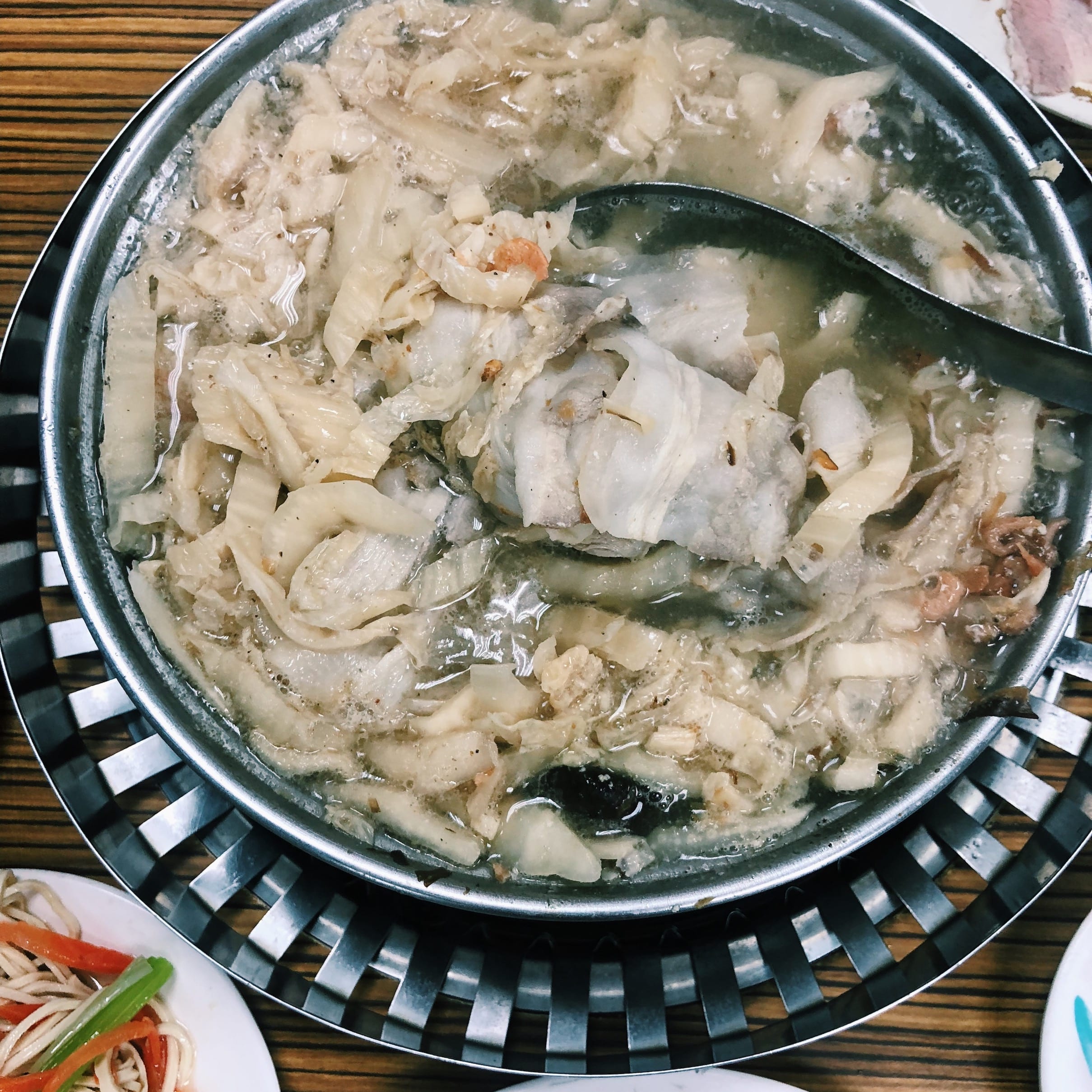 はい!すぐにランチの時間です。「長白小館」(台北市大安区光復南路240巷53号)で、昨晩とは違うスタイルの「酸菜白肉鍋」を食べます。