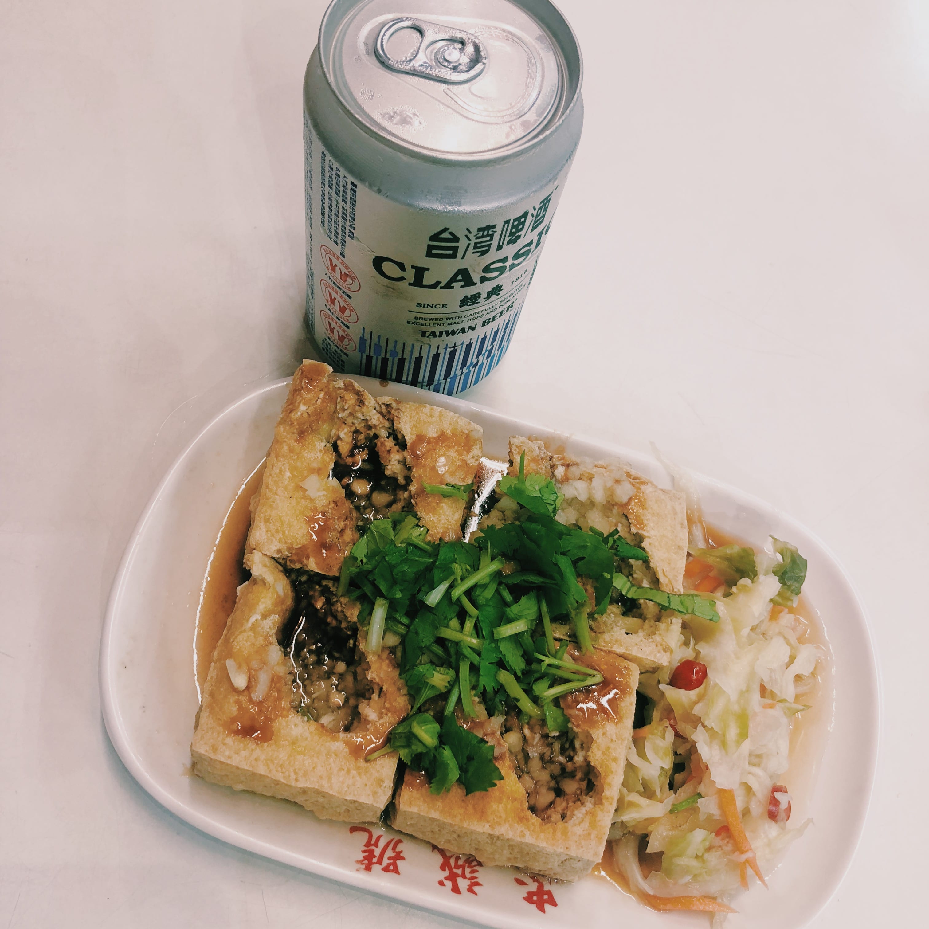 「臭豆腐(チョウドウフ)」は名前の通り臭いが強烈なのですが、逆に食欲が刺激される!発酵液に漬けた豆腐を揚げたこの料理は外はカリカリで中はふっくら、ジューシー。キャベツの酢漬けと甘辛ソース絡めて食べると、ビールに合う。