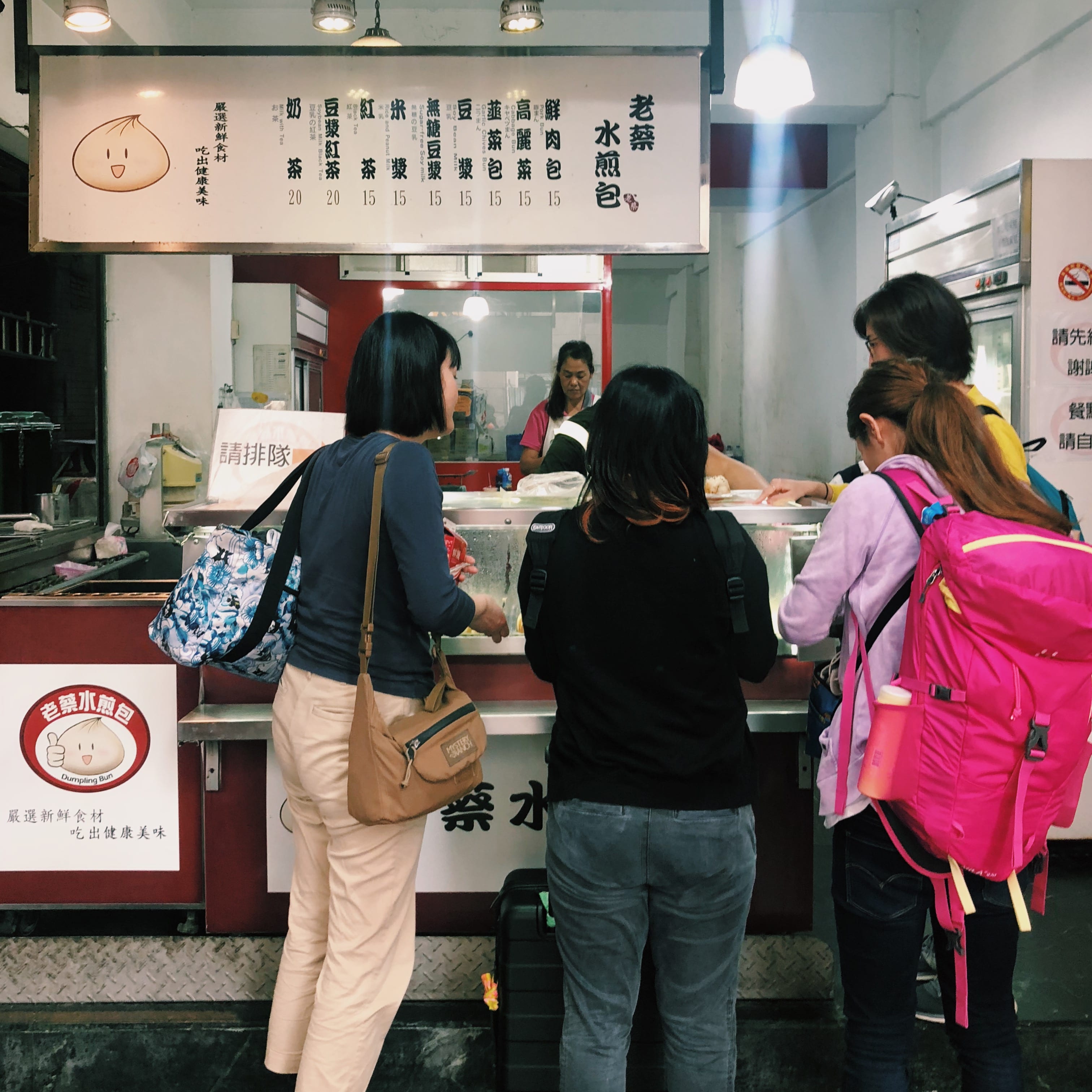 あっという間に空港に向かう時間に。台北駅近くの「老蔡水煎包」(台北市中正区許昌街26之1號9)で「水煎包(スウェジェンバオ)」をテイクアウト。