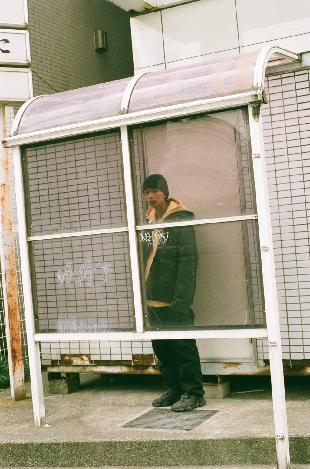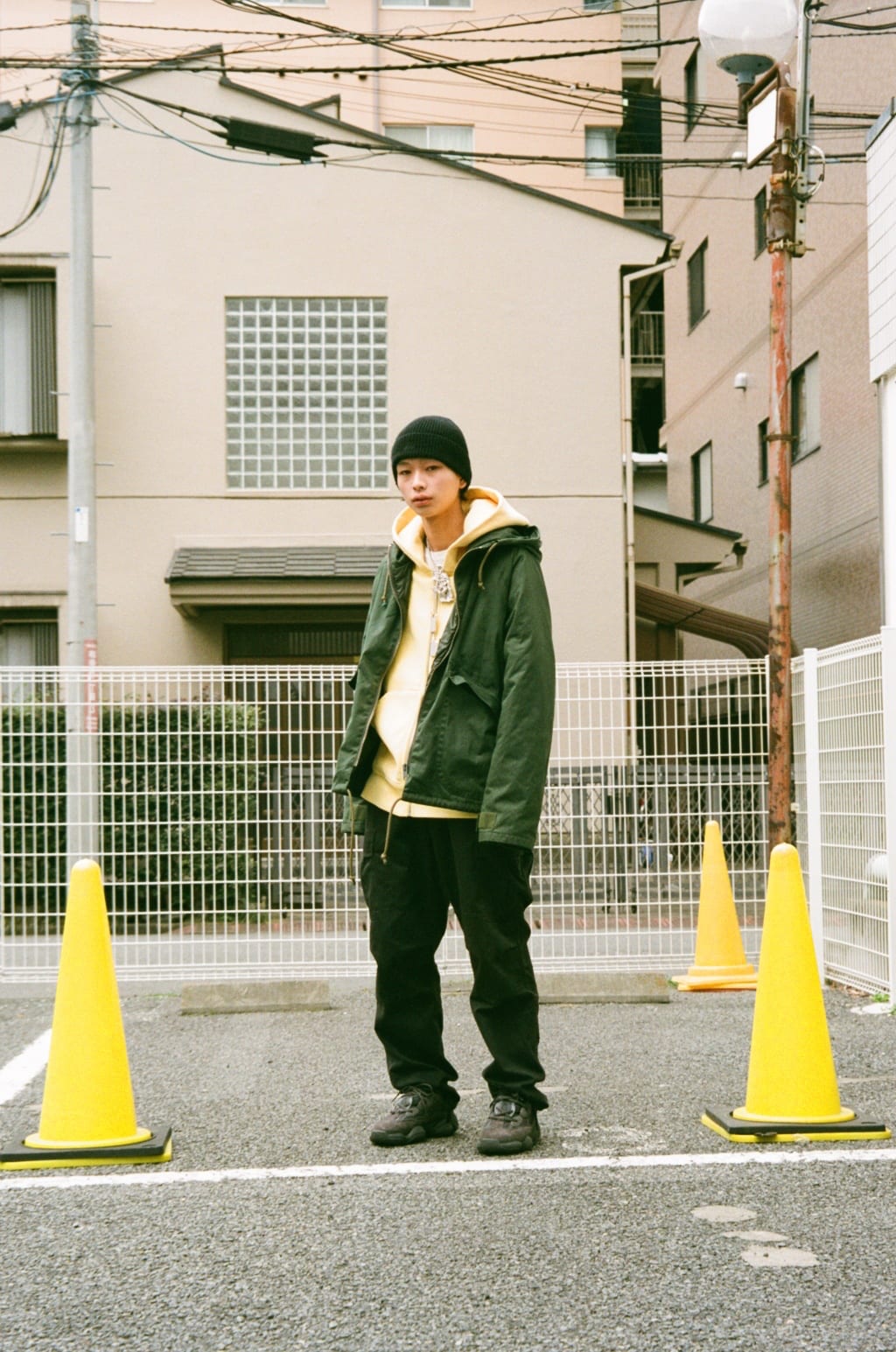 ジャケット、パーカー共に: yeezy season3、パンツ: ノーブランド、シューズ: yeezy 500