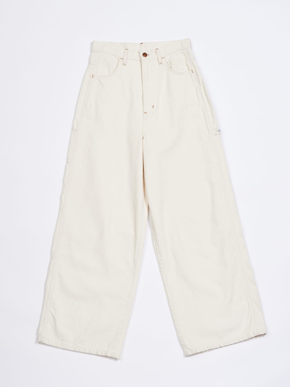 メンズライクなシルエットをつくる、ゆるりとしたワークパンツは私の大好物です。冬に着る白も私の大好物です。背が高い私にもジャストなサイズ感。