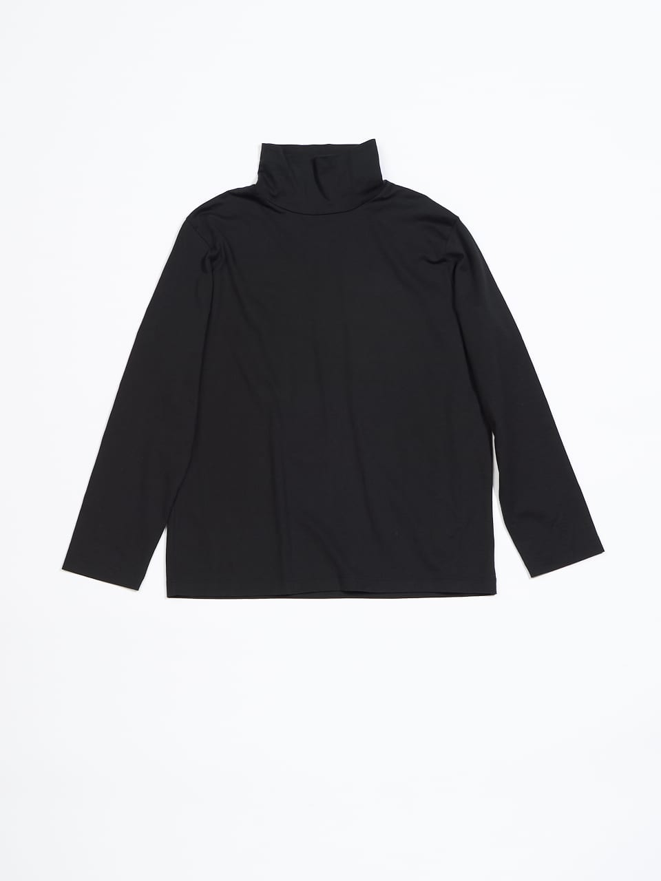 冬は断然タートル派です。ニューヨークで創業したカットソーブランドの、タートルネックTシャツ。コットンだから単体でスルッと着やすい。