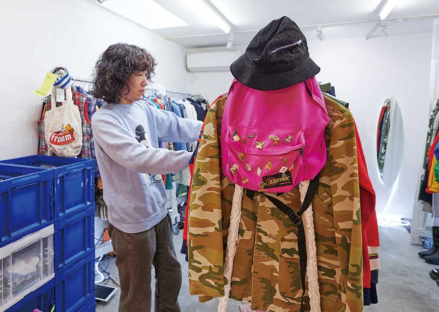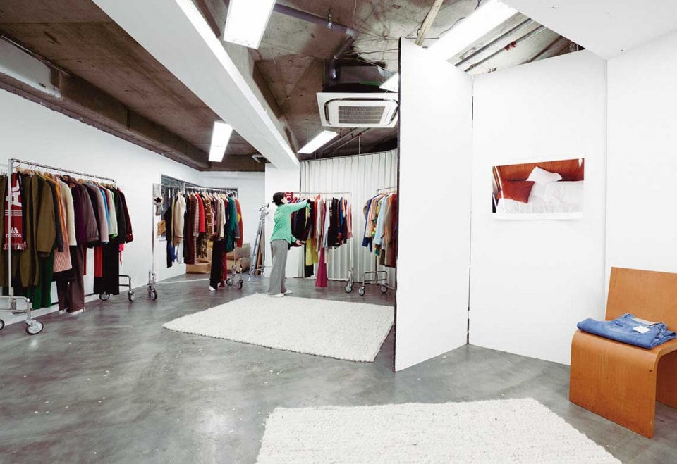 広さに驚く店内はスタイリッシュそのもの。EC時代からスタイリング、撮影までセルフメイドのヴィジュアルに定評があり、センスが内装にもあふれている。奥には年代も国も問わず直感でいいと思った服を、卓球台を模したテーブルにはジュエリーや小物をレイアウト。セレクトと古着が混合する空間で何を選ぶ?