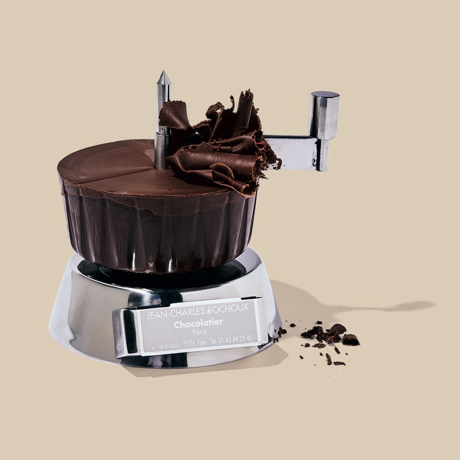 「ふわふわのチョコレートを好きなだけ食べられたら」そんな夢を実現するショコラ削り機。台にチョコレートをセットし、ハンドルをくるくる回すと薄〜くスライスできる。フリルのようなチョコレートは舌で溶け、甘い香りが広がる。パンにのせたり、ミルクに浮かべたりと楽しみ方は自由。セットできるチョコレートは全3種類。