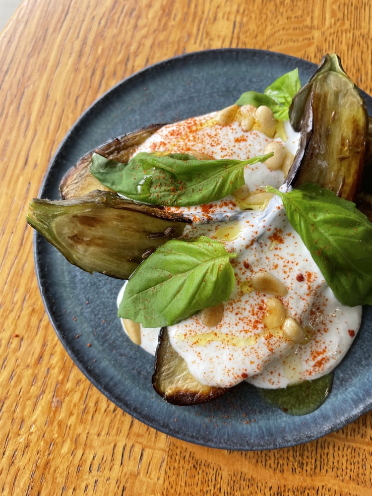 トルコではよく見られるという茄子×ヨーグルトの組み合わせ。意外と万能で目にも美味しいヨーグルトソースをチリパウダーやバジルでアレンジして、香ばしい焼き茄子へダイレクトに!酸味と風味を楽しみましょう。